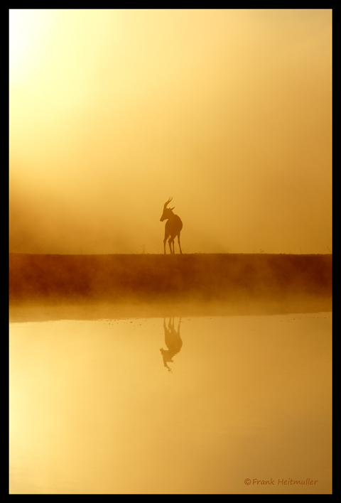 Through the mist rising off the lake it appeared, as if to worship the sun it stood there in perfect solitude.