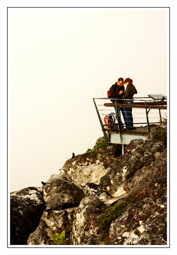 The mist cleared for a moment and revealed this couple standing on the ledge with a cloud as a back drop, taking a series of pics, I soon released they were getting engaged. A dream come true for someone I suppose. OK, sounds cynical, but mailed them the pic afterwards with no response, OOPS!!!.