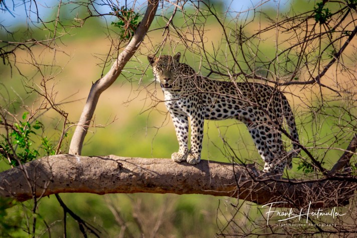Having been at the Pilanesberg Centre earlier in the afternoon, watching some lions across the way, when the rumours of a leopard in a tree on the way to Mankwe hide had started surfacing. We are not in the habit of chasing sightings, but we had really wanted to see a Leopard so we headed off in a puff of… fairy dust ☺️. Excited to still find him still in his tree we jostled with all the onlookers for a view, but that was short lived. He soon got up, jumped down the tree and walked across the road in front of us before heading into the long grass and disappearing. We searched for a while, but he was gone. We were happy that we had seen him and headed off to Red Rocks for the obligatory, “hope to spot a leopard at sunset on a rock” drive by. Finding nothing, we turned round and headed back toward Bakgatla, our campsight during our stay in the park.